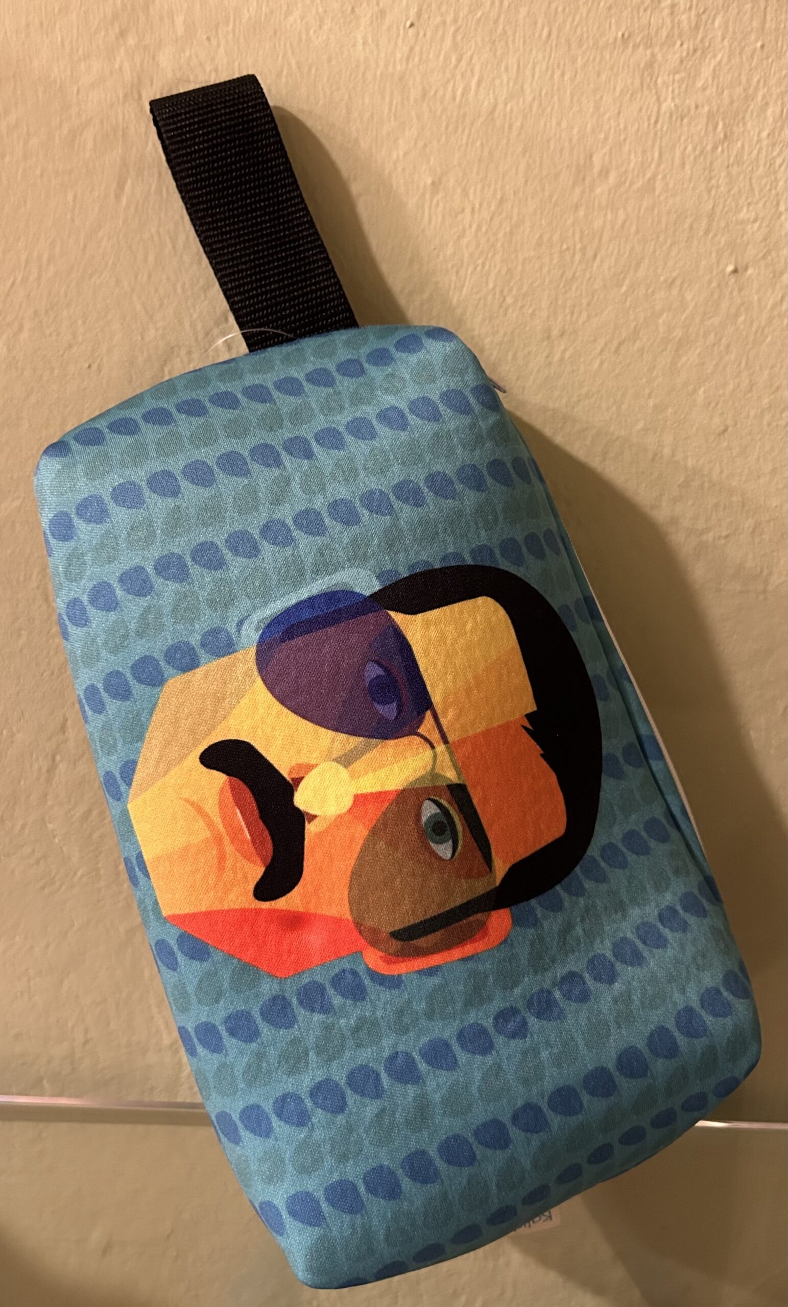 Neceser Fredy Mercuri, o estuche de fondo color verde y estampado, con una bella imagen del rostro de Fredy , interior blanco y con cremallera blanca , textura neopreno sedoso. Dispone de un asa para poderlo colgar o llevar mejor .