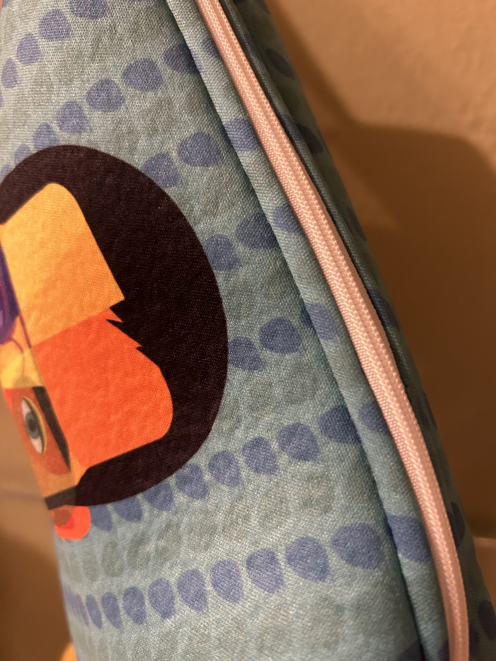Neceser Fredy Mercury , o estuche de tela color verde con la imagen del rostro de Fredy , textura del tejido neopreno sedoso..