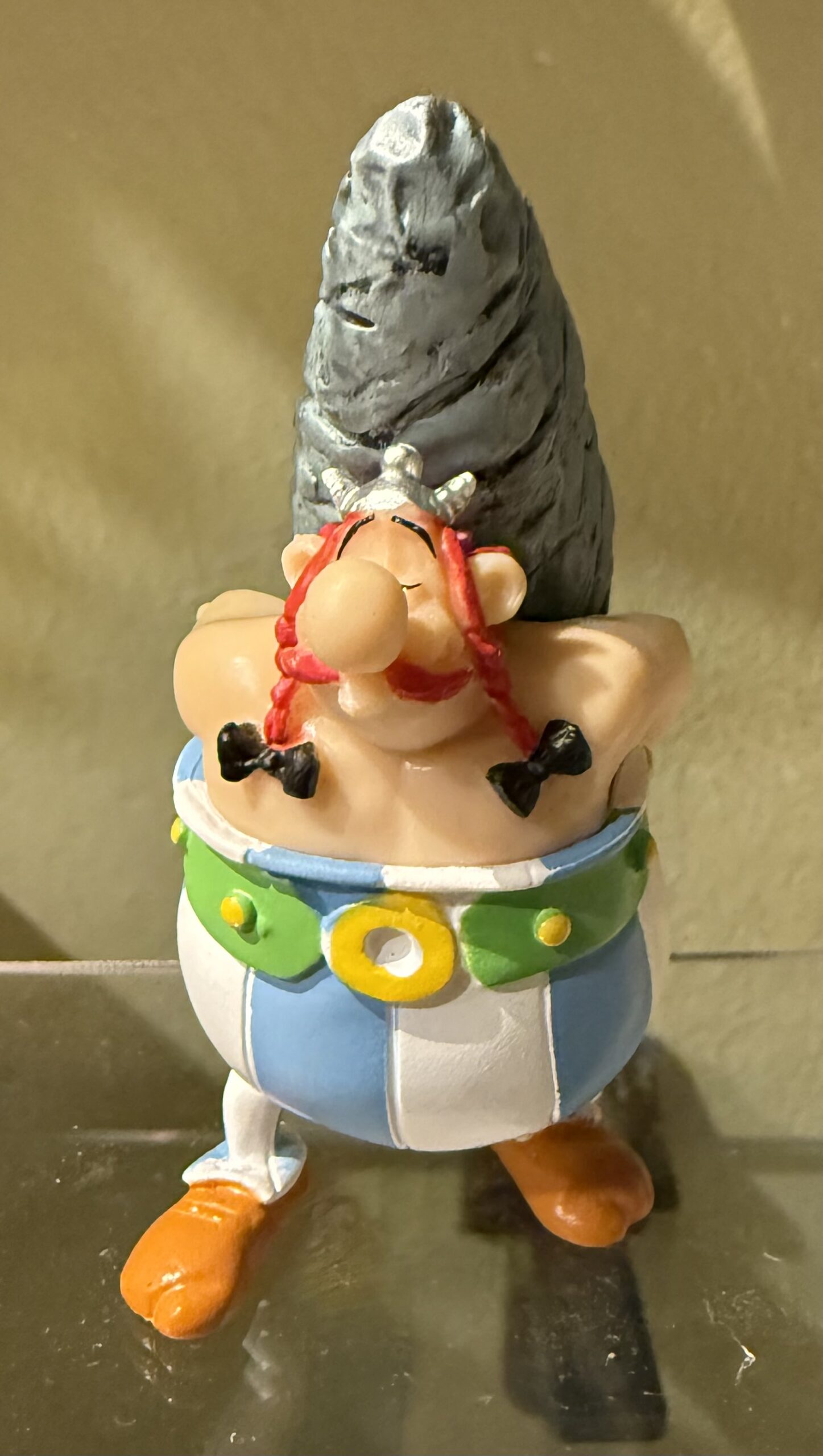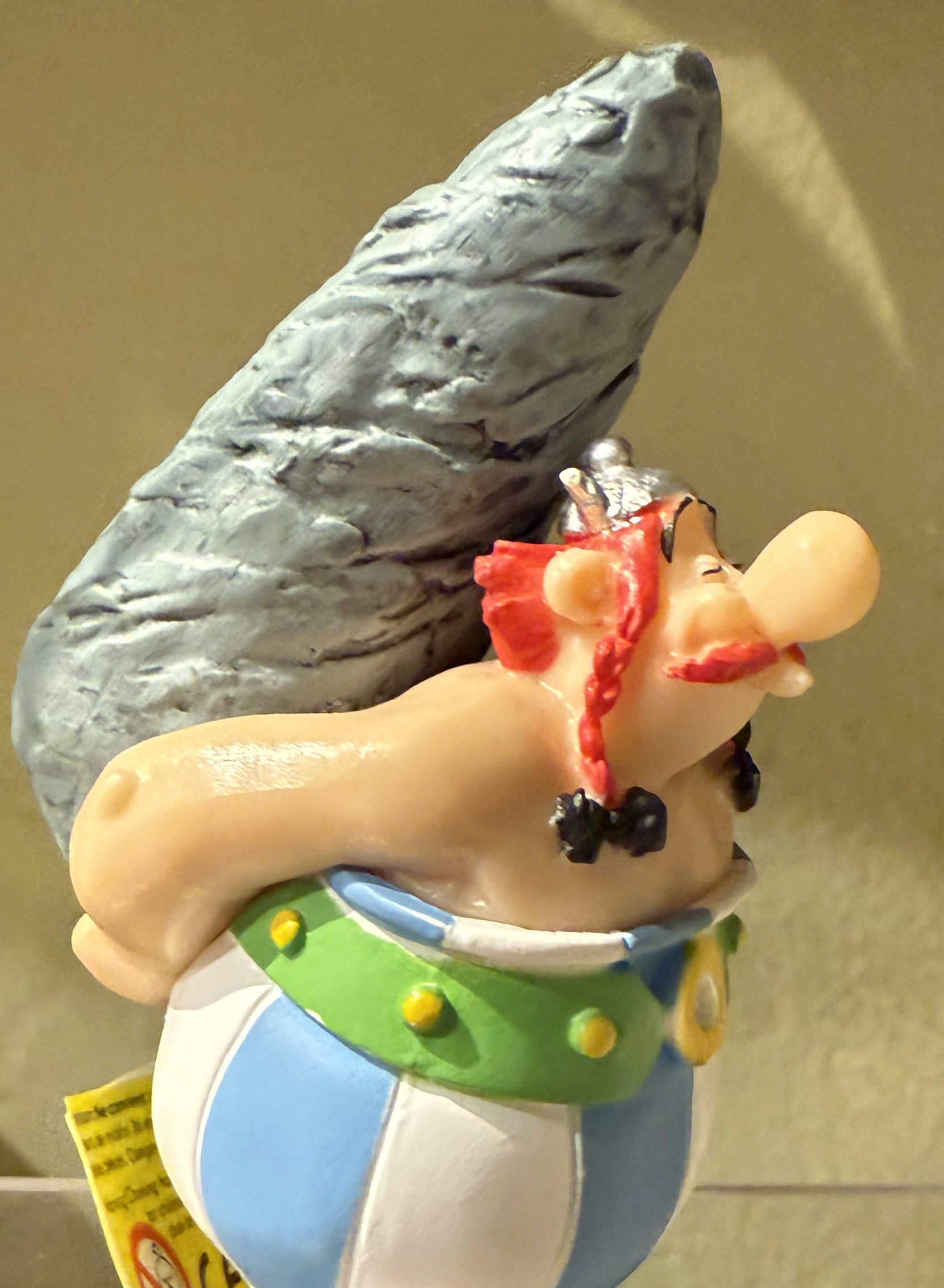 Obelix con dolmen . De 11 cms de altura . Característico personaje Galo de los cómics Asterix y Obelix, característico por su fuerza , aquí portando un dolmen con sus manos. Material pvc