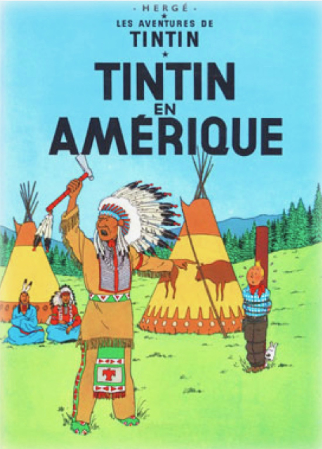 Póster portada del cómic , “Tintin en Amérique “.  “Tintin En America  ”impresión en papel couche satinado gran gramaje. Portada original en frances. En esta ocasión  Tintin Viaja a América del Norte  . La aventura en la que se enfrentará a unos terribles gánsters de Chicago . Incluso haciéndolo al famosísimo Al capone.  Al principio  Hergé solo se iba a inspirar en los pueblos indios de Piel roja , por el cual tenía gran fascinación .  Pero al final quiso mostrar lo maximo posible de America. Incluso los desiertos y las verdes praderas. Tanto la industria moderna como las grandes ciudades . Mostró la prohibición del alcohol , los gansteres , los cow-Boys.  También representó como fueron expulsados los pieles rojas de sus tierras por encontrar petróleo en ellas. En este póster del cómic de Tintin En America  volverá a enfrentarse a unas aventuras trepidantes . Esta preciosa portada vemos un poblado indio y las praderas  de norte America  . Póster Tintin En Amérique , Tintin en America   , tiene una medida  de  70 x 50 cms .